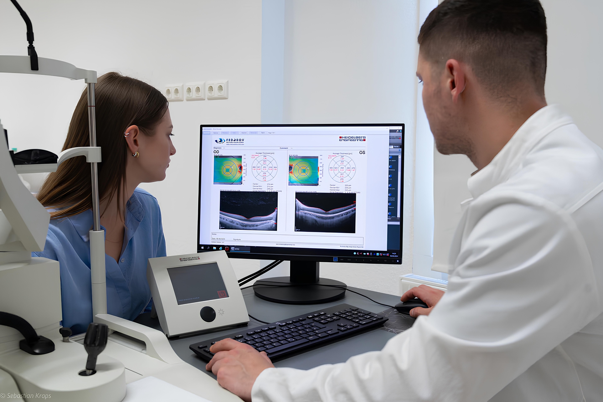 Ophthalmologists at the Fedorov Vision Restoration Clinic Berlin regularly use technology to study the eye's visual function and any hidden structural abnormalities. The clinic has the latest equipment, including optical coherence tomography, electrophysiological examination, and auto refractometer.